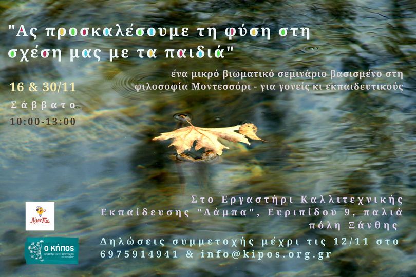 Πώς μπορούμε να προσεγγίζουμε τις καθημερινές αλληλεπιδράσεις μας με τα παιδιά – μικρά και μεγάλα – αξιοποιώντας τη Μοντεσσοριανή φιλοσοφία, αλλά και μια βαθύτερη σχέση με τη φύση; Πρόκειται για δύο προσεγγίσεις που αλληλοεμπλέκονται, αλληλοσυμπληρώνονται.