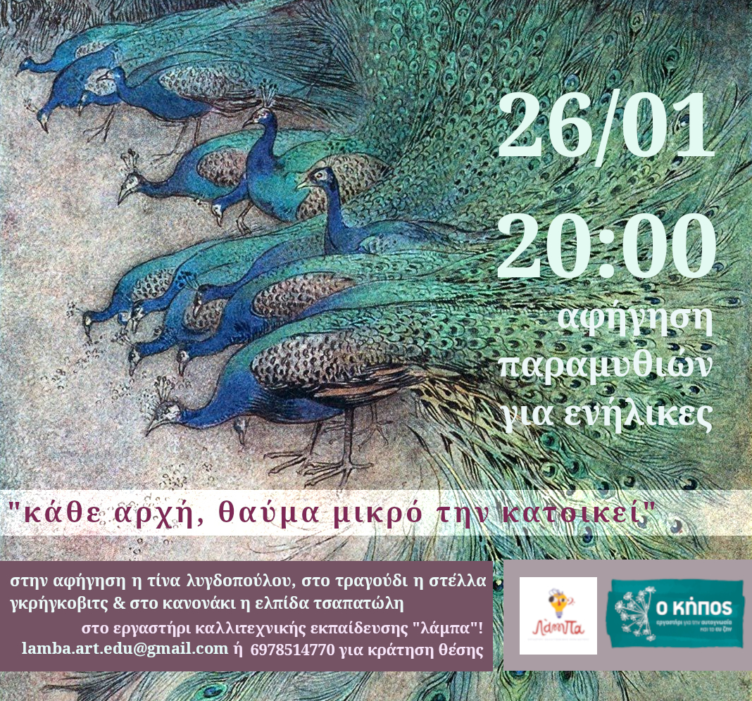 26 Ιανουαρίου στο Εργαστήρι Καλλιτεχνικής Εκπαίδευσης “Λάμπα”, Ευριπίδου 9, παλιά πόλη Ξάνθης στις 20:00.